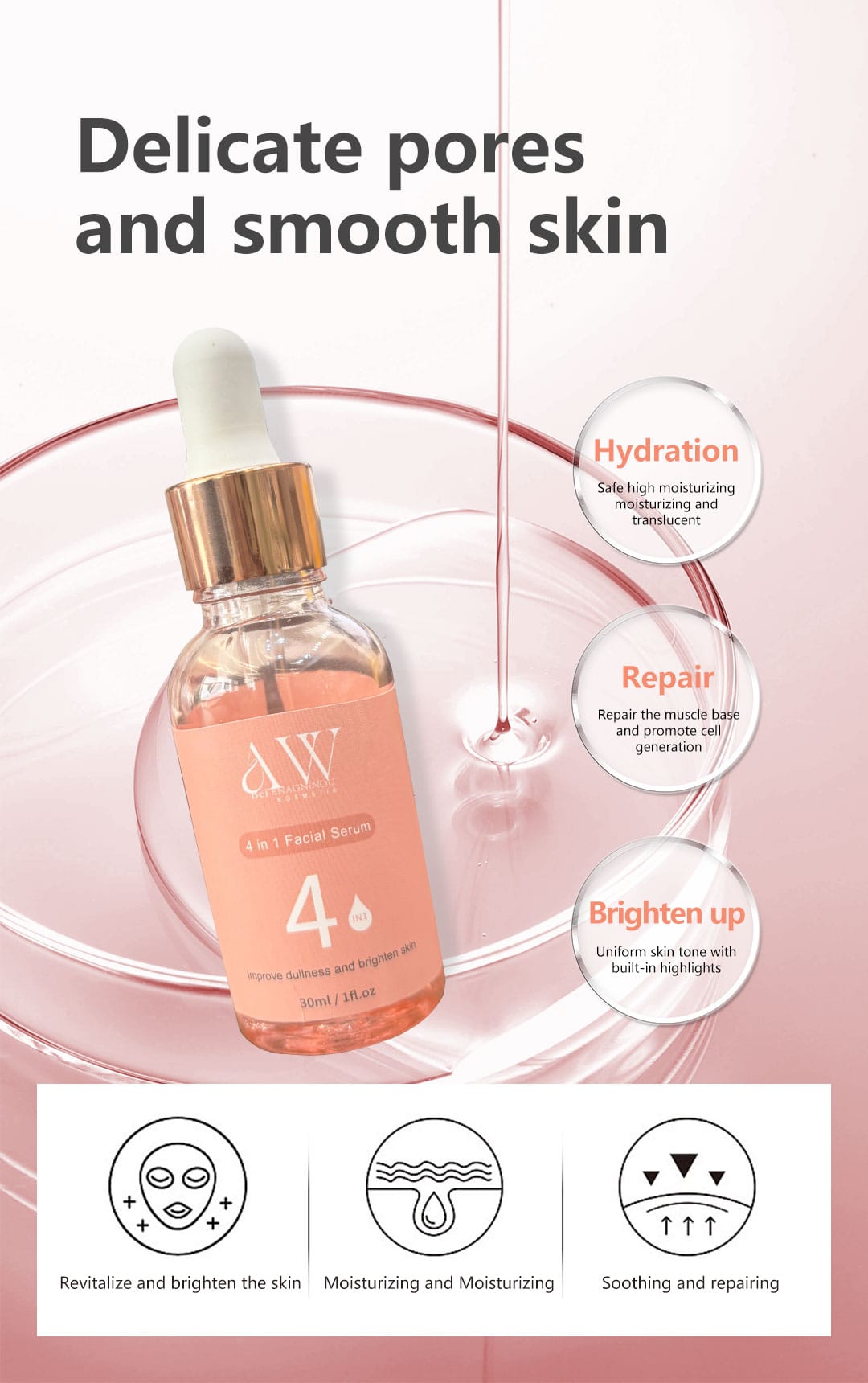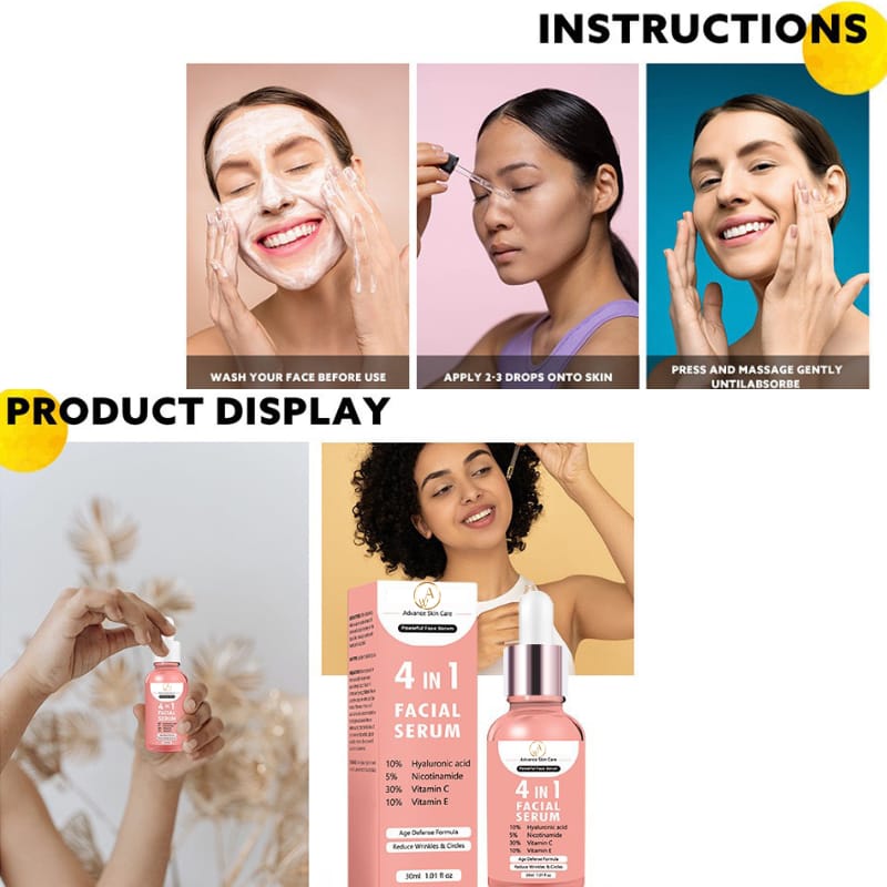 INSTRUCTIONS: After cleansing, take an appropriate amount of serum and apply it evenly on the facial skin, massage gently with hands until absorbed.